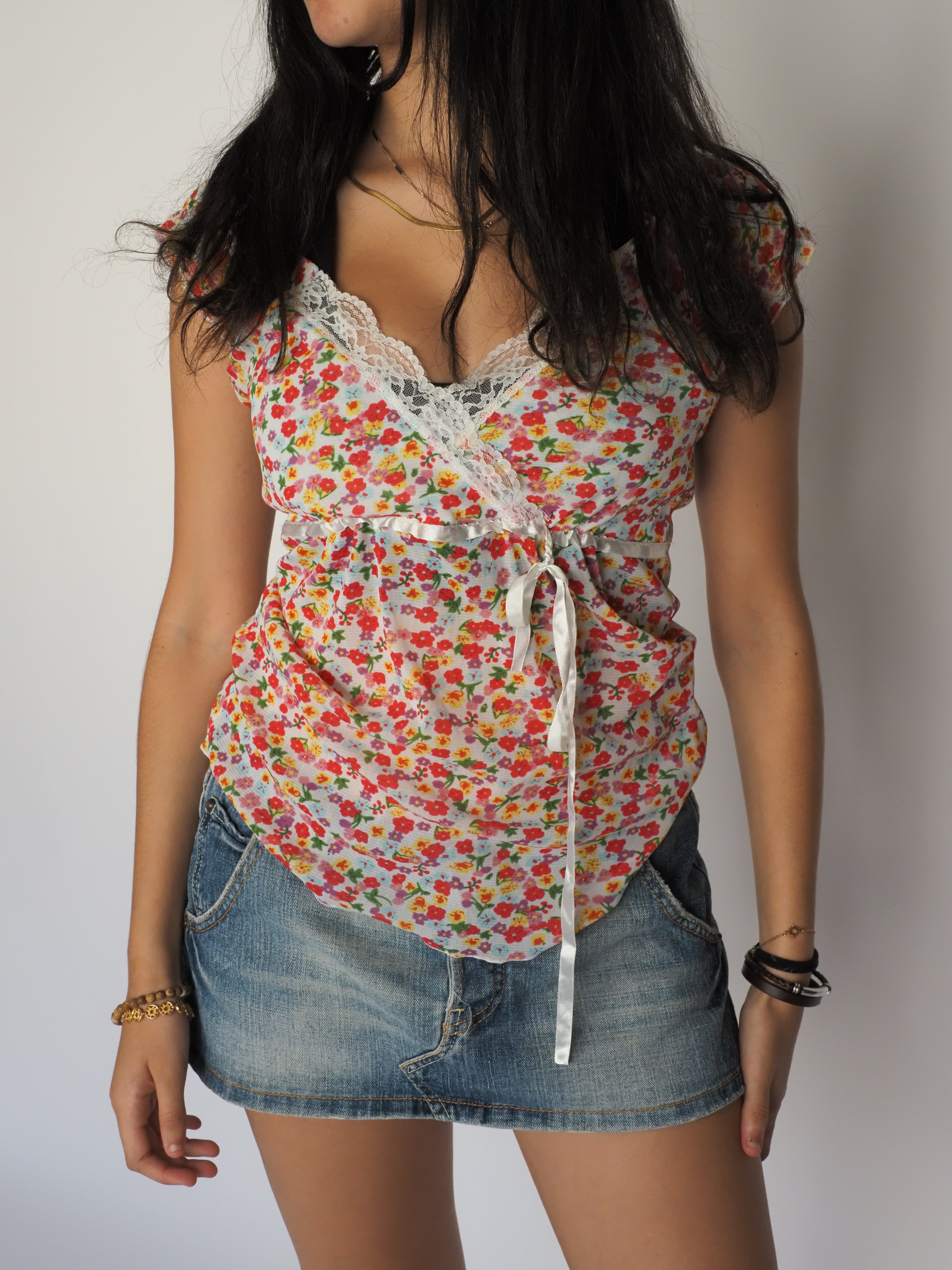 Vintage Sheer Floral Wrap Top with Lace Trim – Flowers Paradise by TRN