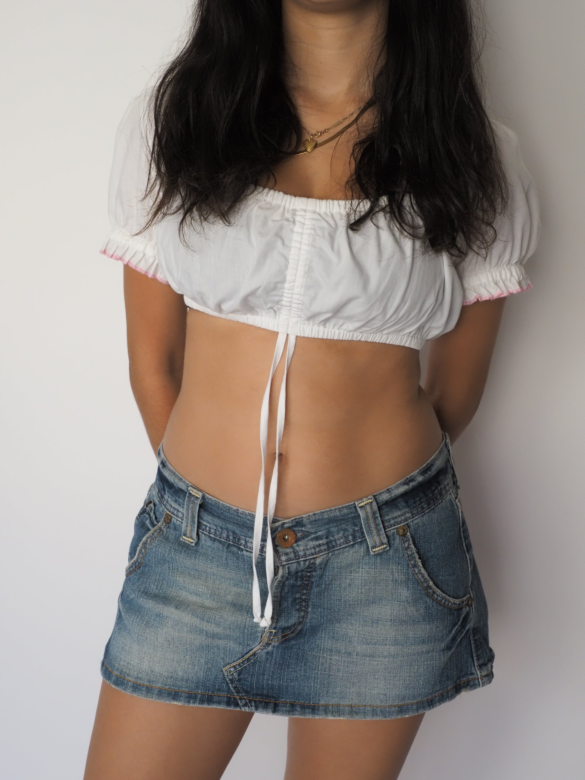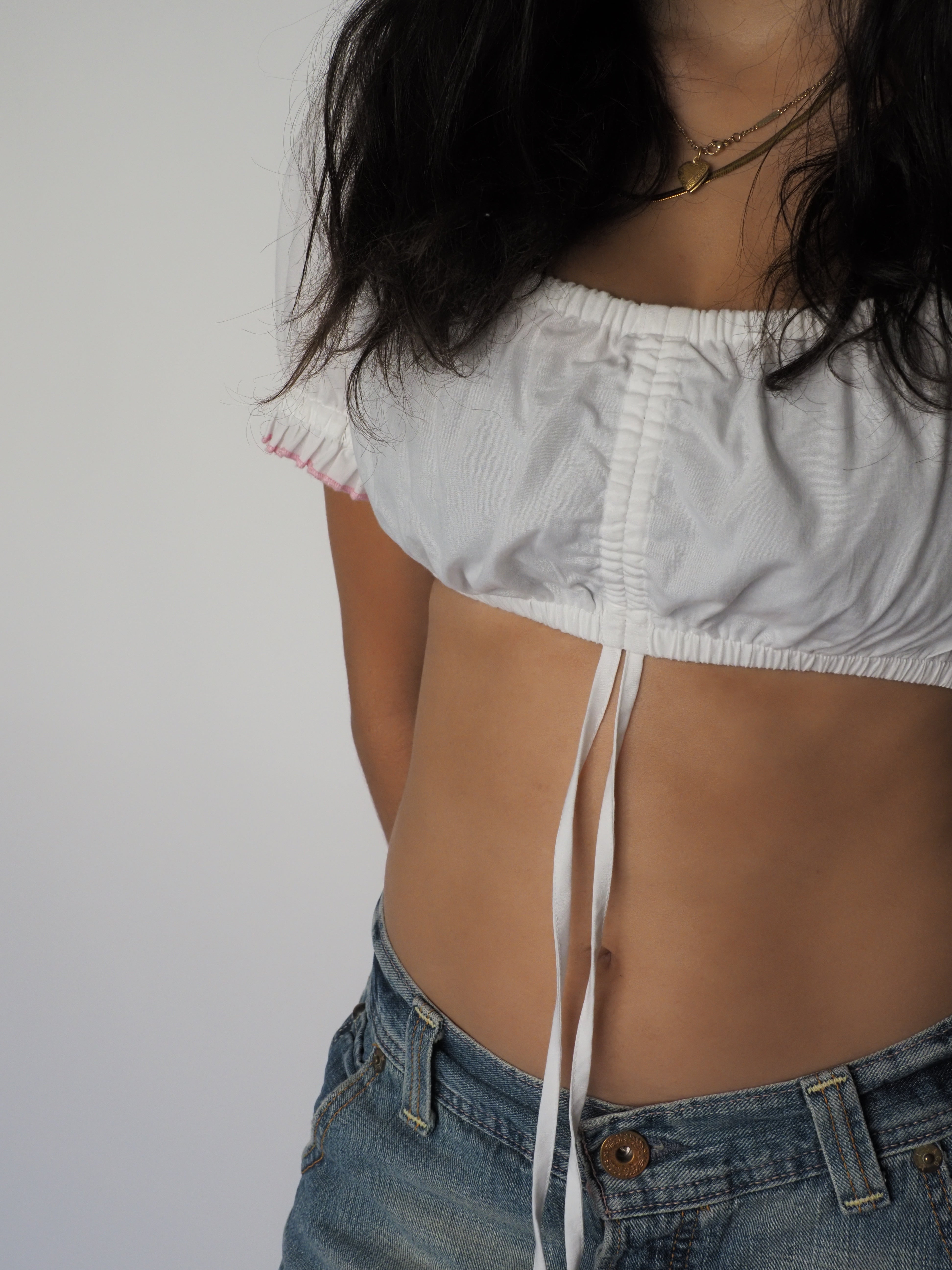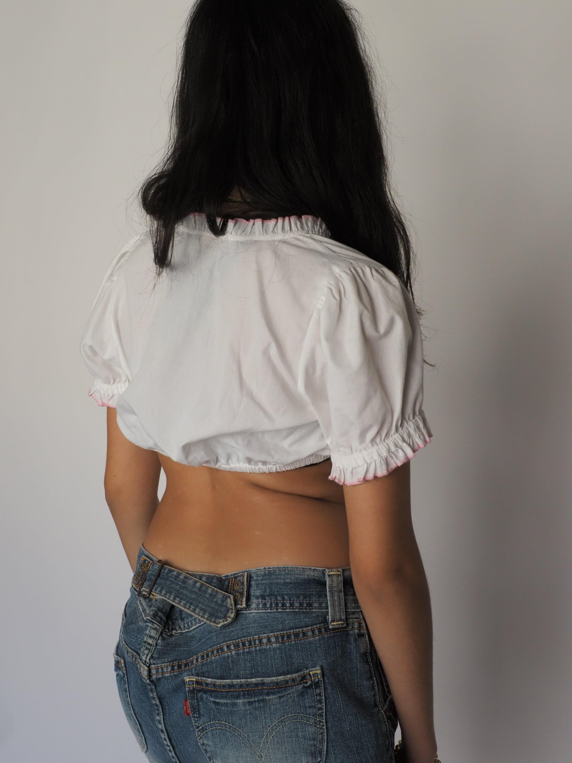 Vintage White Peasant Micro Crop Top with Ruched Tie Front – Waldschütz