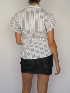 White & Black Vertical Stripe Short Sleeve Button-Up Shirt – BHS