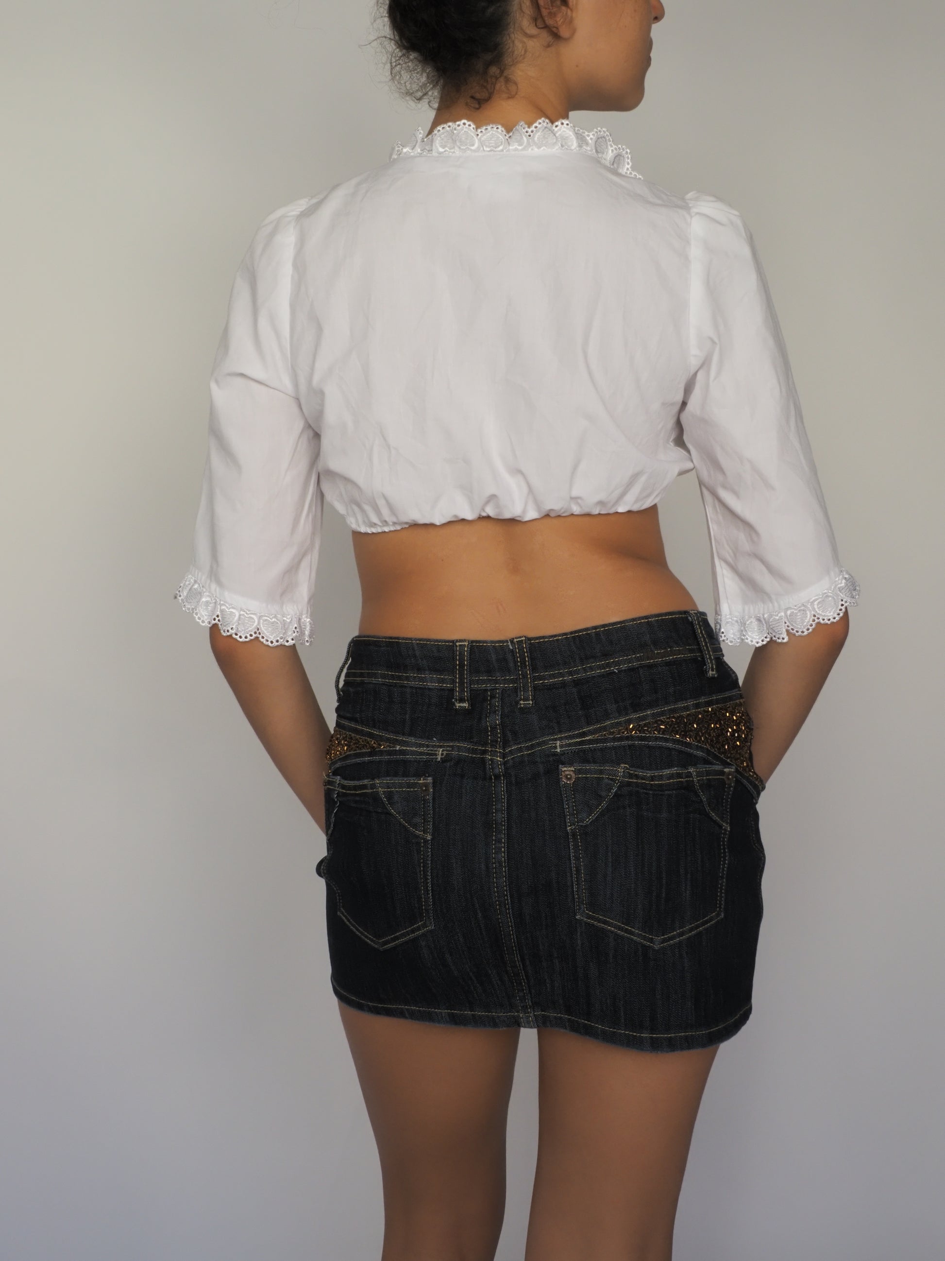 White Cropped Blouse with Eyelet Lace Trim – Fuchs