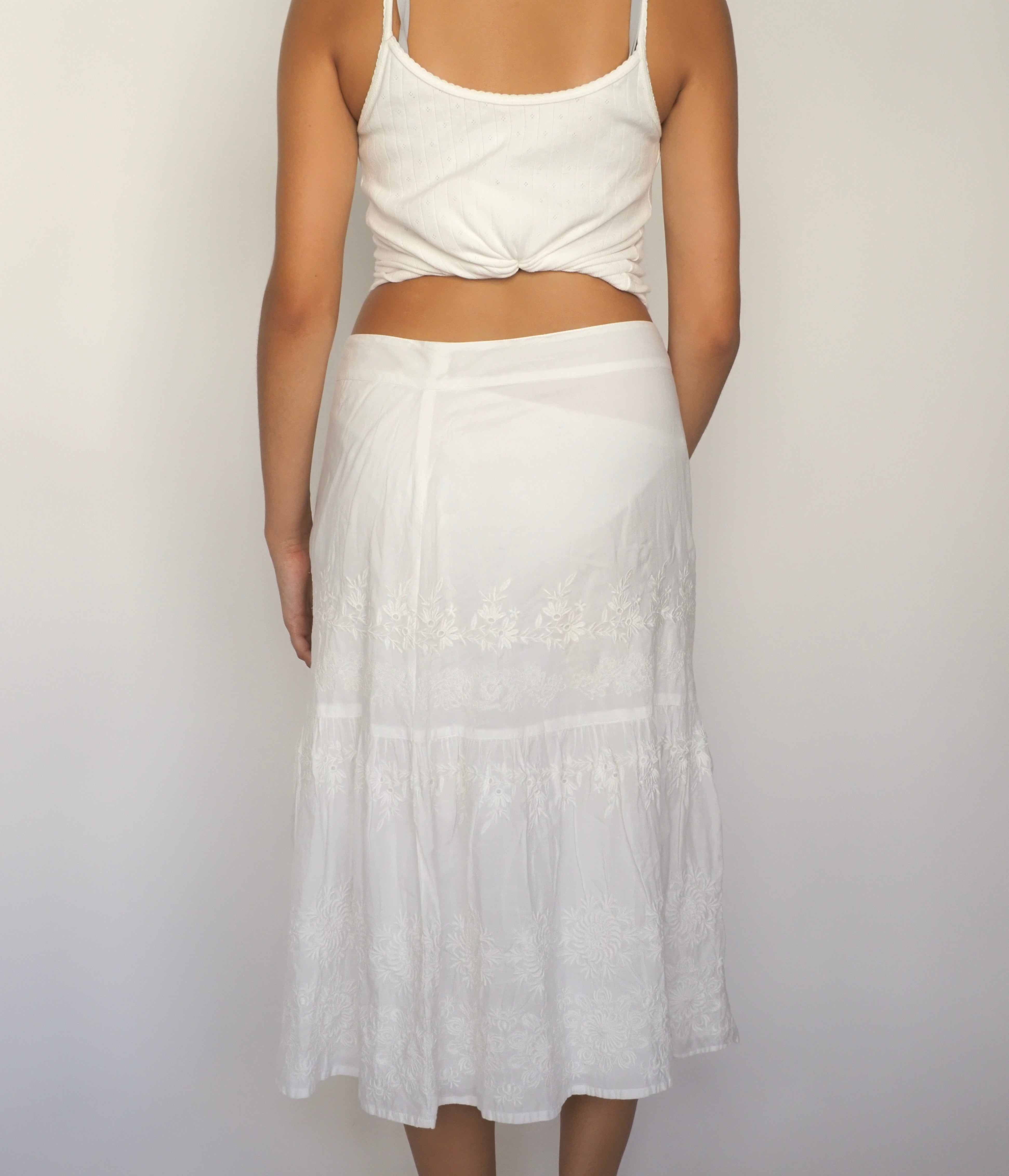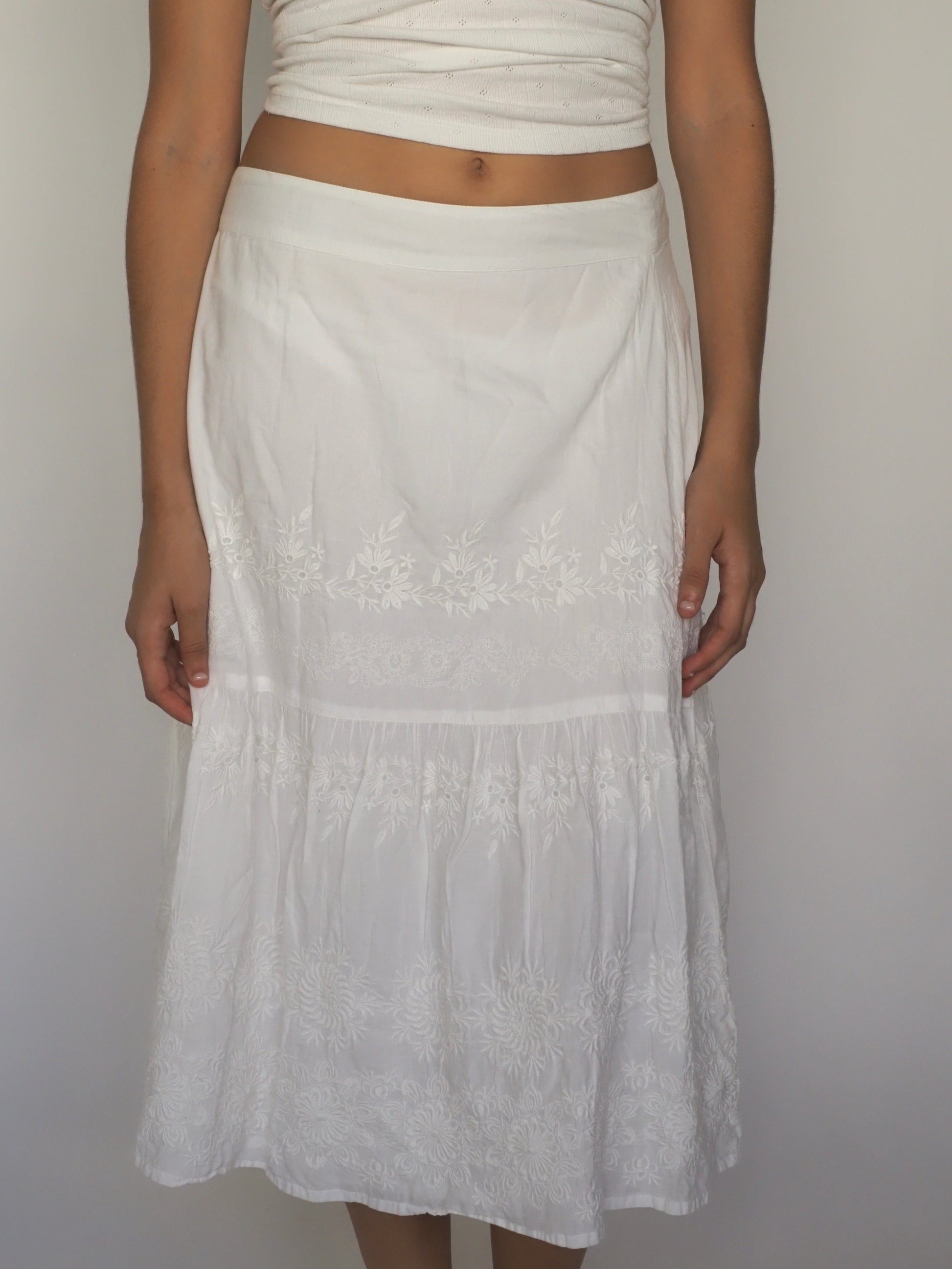 White Embroidered Cotton Midi Skirt – Monsoon
