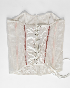 Ivory Satin Corset Top with Red Lace Panel Detailing