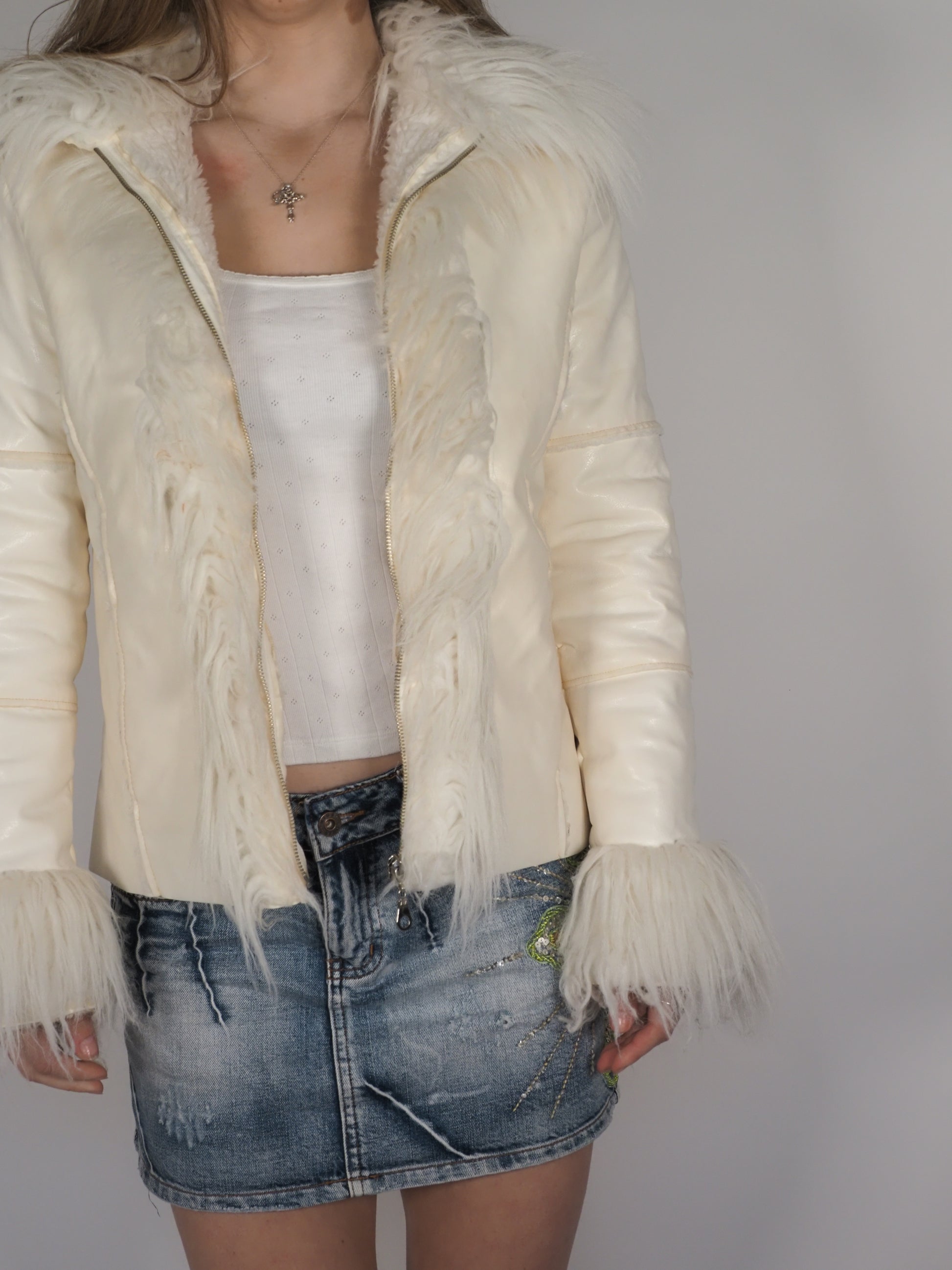 Y2K Furor Cream Faux Fur Trim Jacket