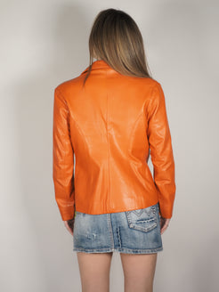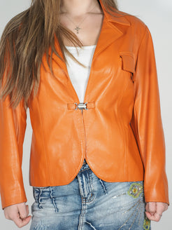 Y2K Tangerine Orange Real Leather Fitted Jacket