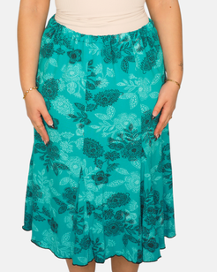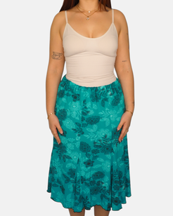 Y2K Teal Floral Midi Skirt with Flowing Lightweight Fit