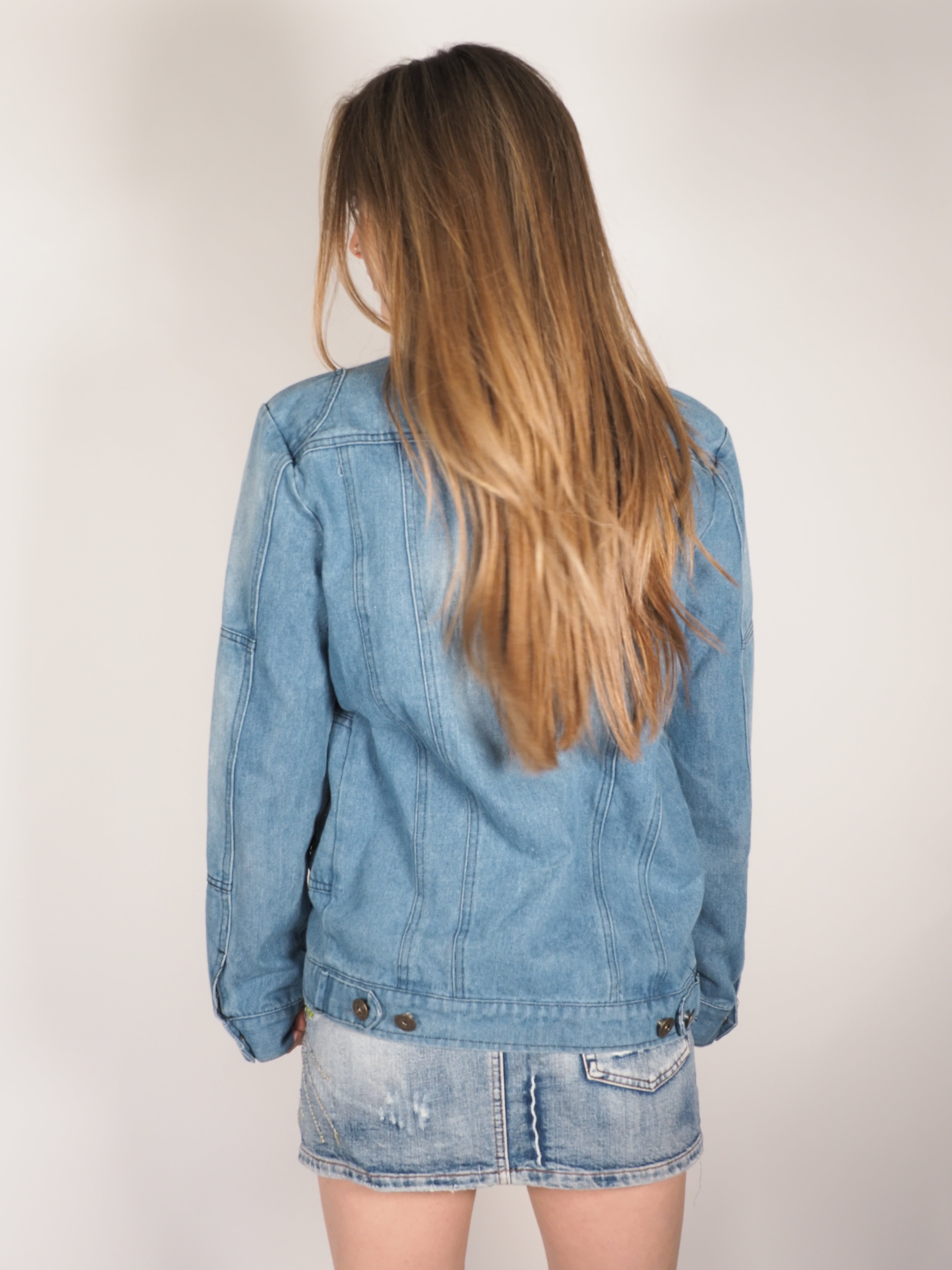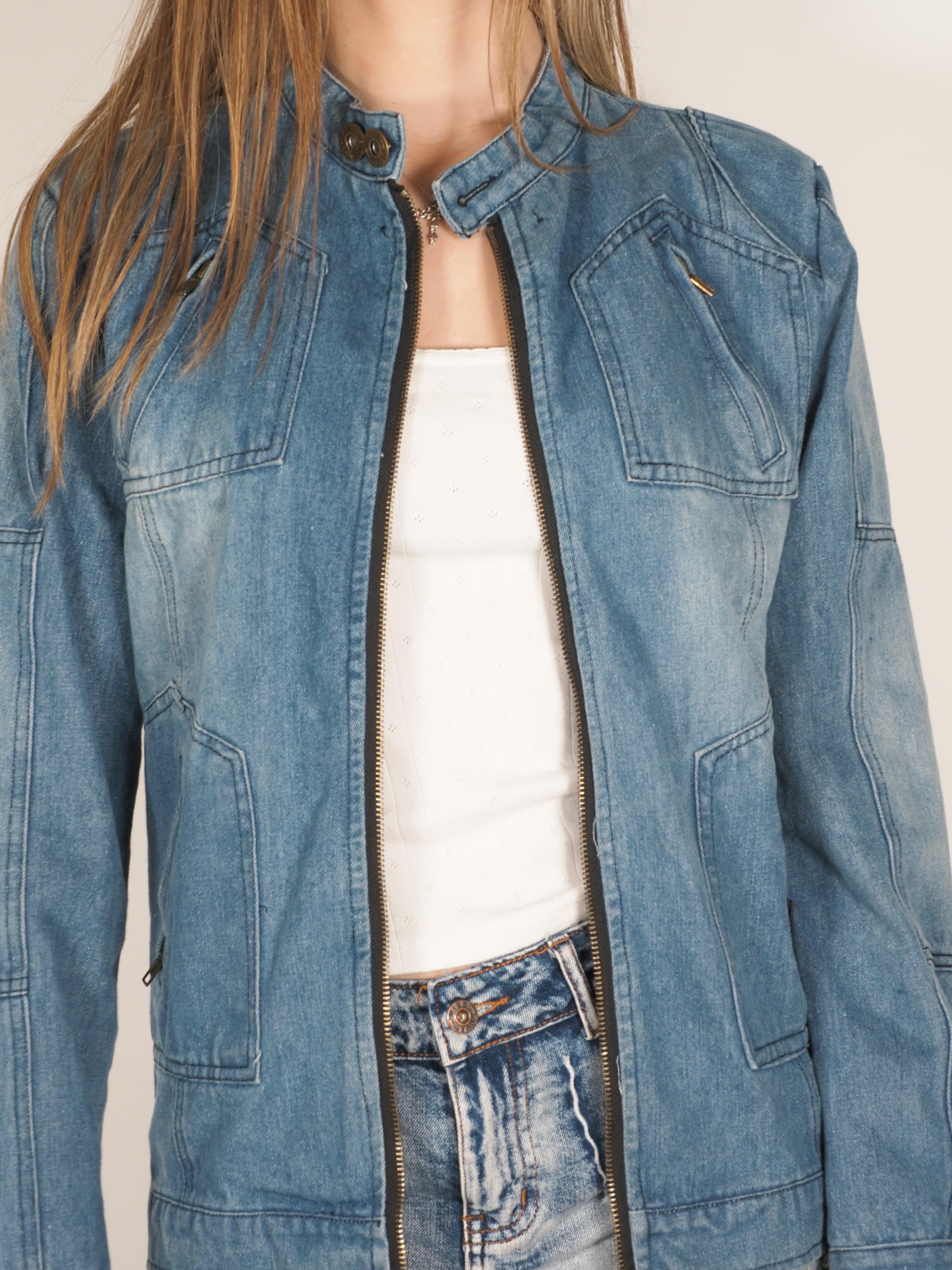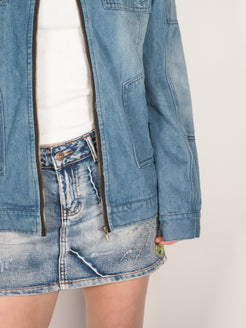 Y2K Tia Bing Zip-Up Denim Jacket with Stand Collar
